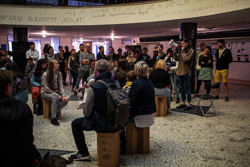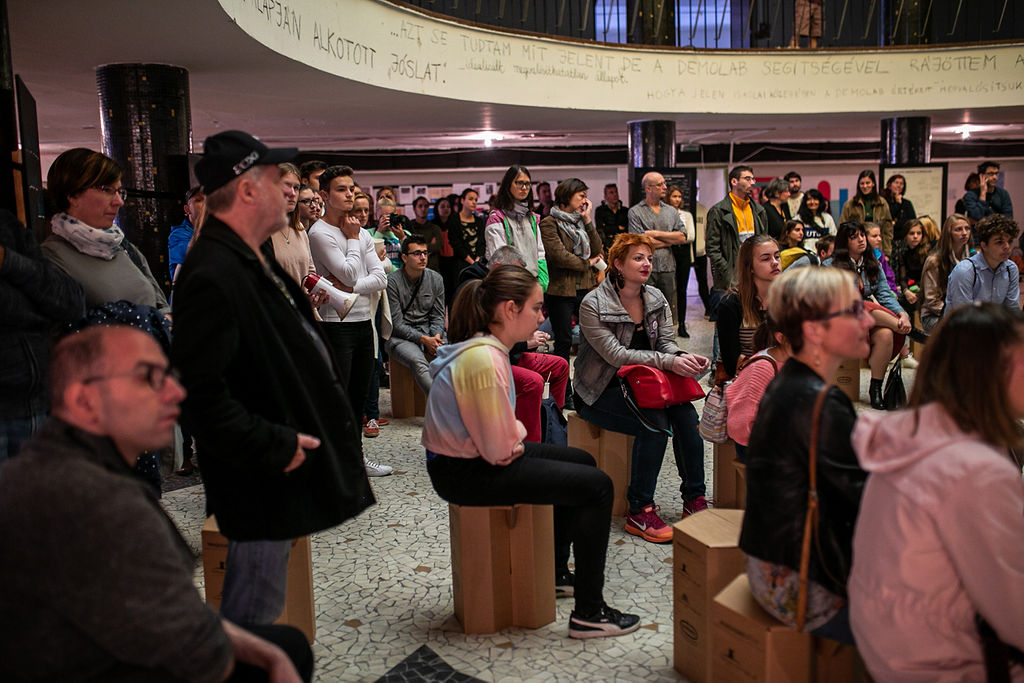 Egy kiállítás megnyitóján álldogálunk éppen, de ez egyben a DemoLab projekt záróeseménye is – csak azt kívánhatjuk, hogy megvalósuljon a folytatás, és ezt a kezdeményezést minél több iskola vegye át, adaptálja a jövőben.”