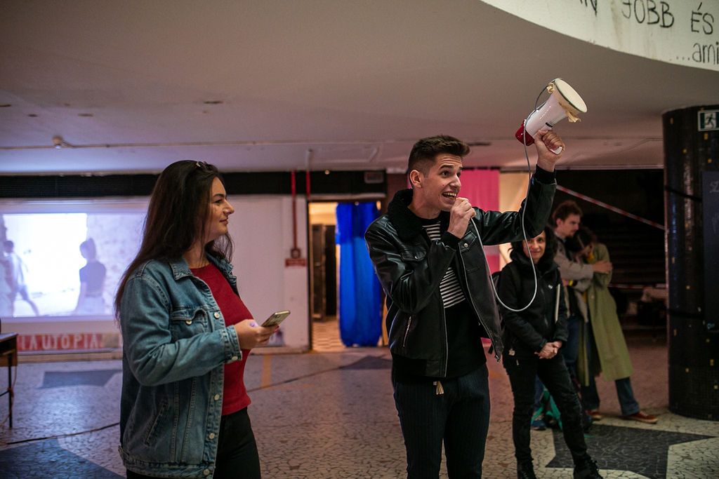 Mindenesetre mi most nézzünk körül az Utópia áruházban: ami itt történik, az a szó legnemesebb értelmében alkotás; pillanatokra vagy hosszabb időre létrejött közösségek kreatív, közös munkái, amelyekben vibrál mindenféle: frappáns vizuális megfogalmazások és a vele járó megtorpanások, kérdések, elkanyarodások is.