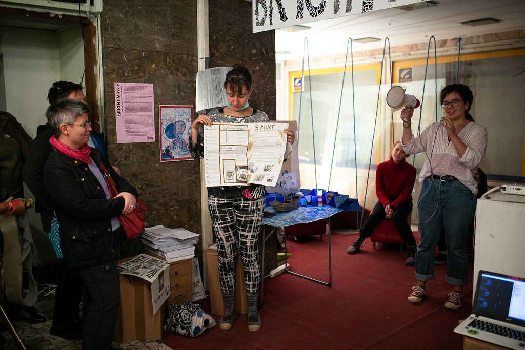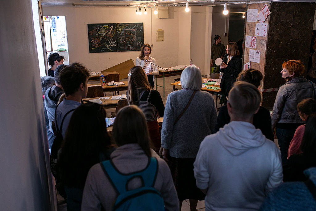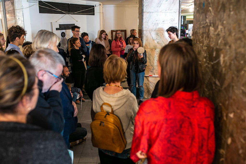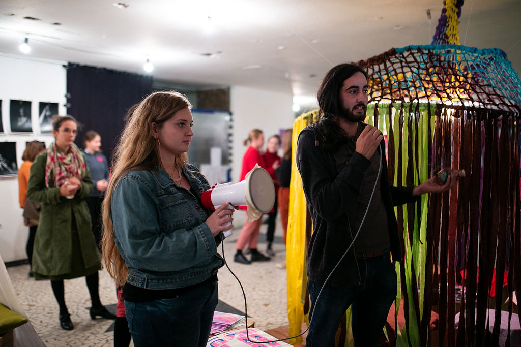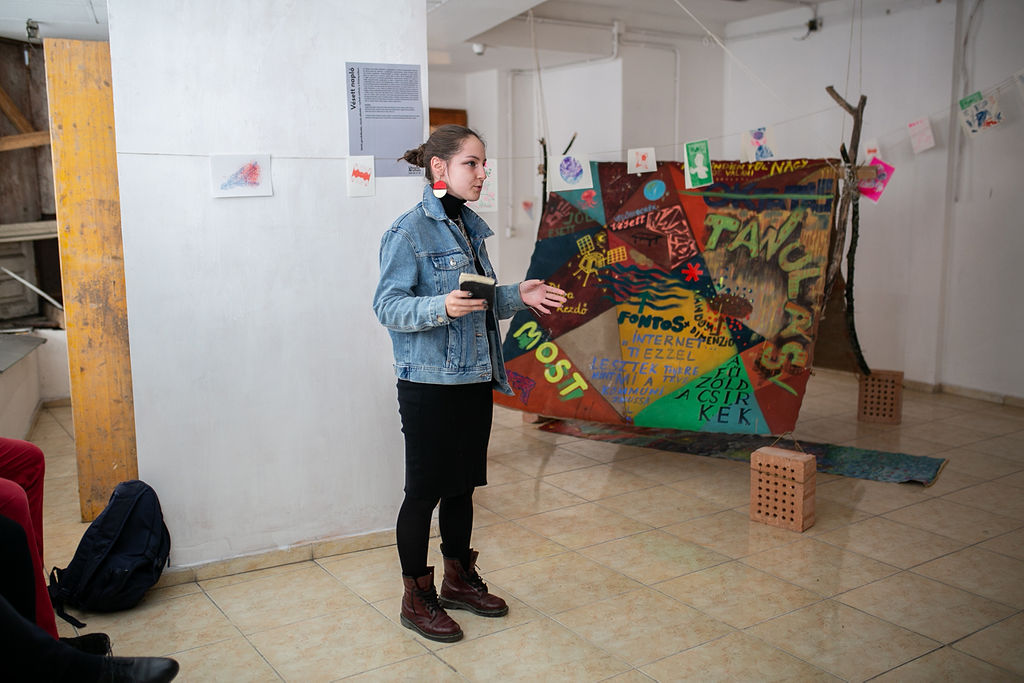 Frappáns vizuális megfogalmazások és a vele járó megtorpanások, kérdések, elkanyarodások is – ezekkel a gondolatokkal nyitotta meg a kiállítást és négynapos záróeseményt Szigethy Anna, képzőművész, ezt követően a Műhelyek diákjai mutatták be az őket foglalkoztató társadalmi kérdésekre adott kreatív és közösen kidolgozott válaszaikat.